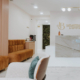 Os materiais selecionados para a execução do projeto são de qualidade superior, priorizando tanto a resistência dos espaços como a sua comodidade. O design é sóbrio e contemporâneo, com uma paleta de cores claras que transmitem elegância e serenidade. Detalhes em dourado foram estrategicamente incorporados, conferindo um toque requintado ao ambiente.