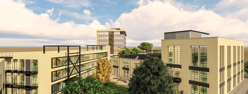 • Equipe de arquitetos e profissionais em evento de Cria+ Arquitetos, foco em projetos inovadores de arquitetura sustentável.
